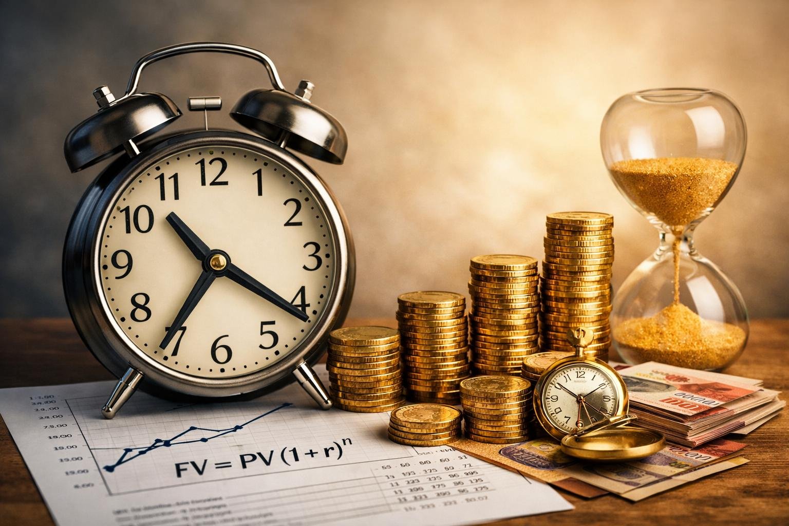 Dalam ilmu keuangan dikenal konsep time value of money, yaitu gagasan bahwa nilai uang hari ini berbeda dengan nilai uang di masa depan. Uang yang dimiliki sekarang dapat diinvestasikan dan berkembang melalui bunga atau imbal hasil. Secara sederhana, nilai masa depan dapat dihitung melalui rumus pertumbuhan majemuk. Artinya, waktu memberi “efek pengali” terhadap uang.